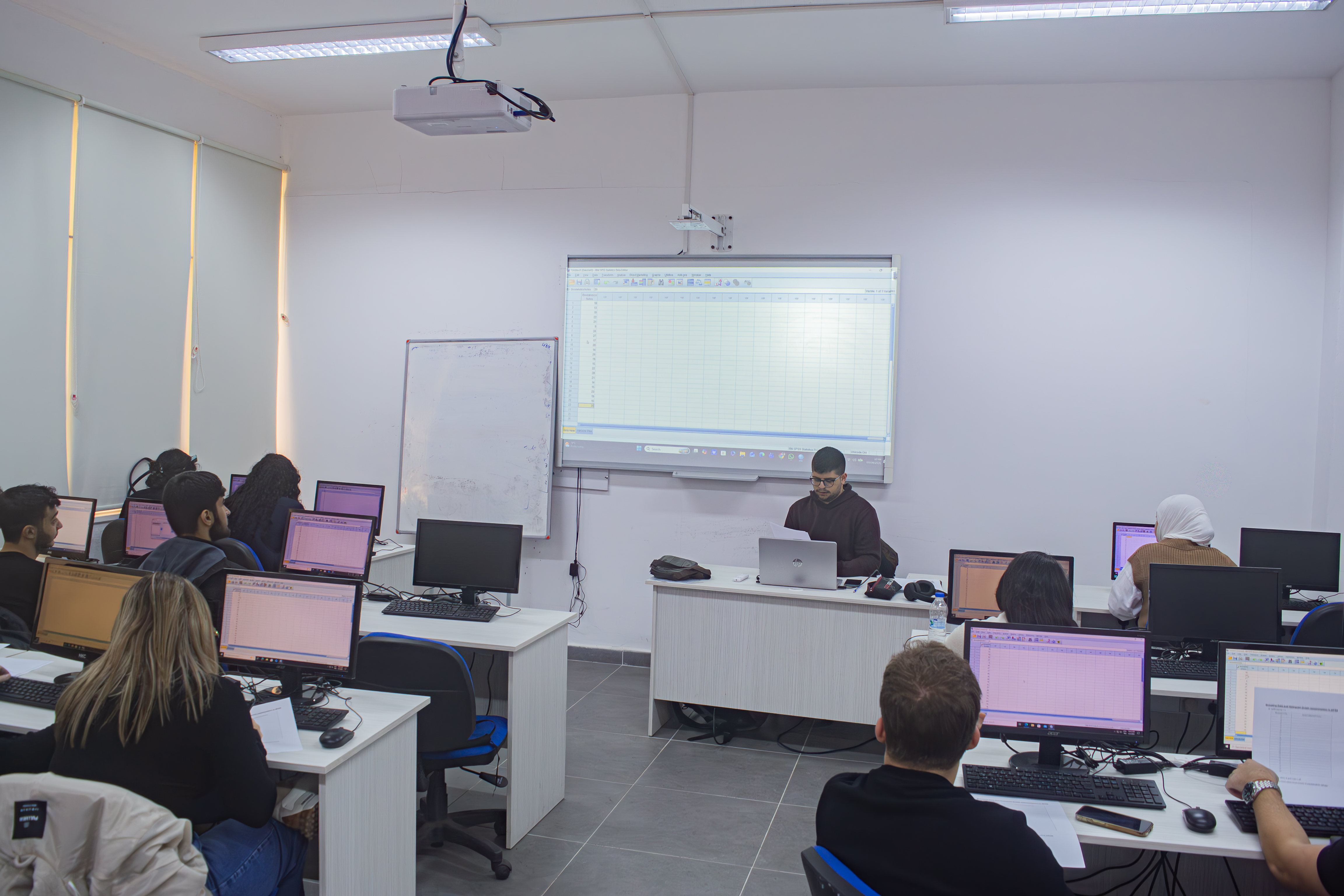 In addition to its computing facilities, CMPLAB 1 is also equipped with a projector, making it suitable for lectures, presentations, demonstrations, and interactive teaching sessions. The combination of capable hardware, specialized academic software, and presentation equipment creates a productive learning environment for both individual practice and classroom-based instruction. CMPLAB 1 therefore serves as an important resource for supporting teaching, research, and student learning at the university.