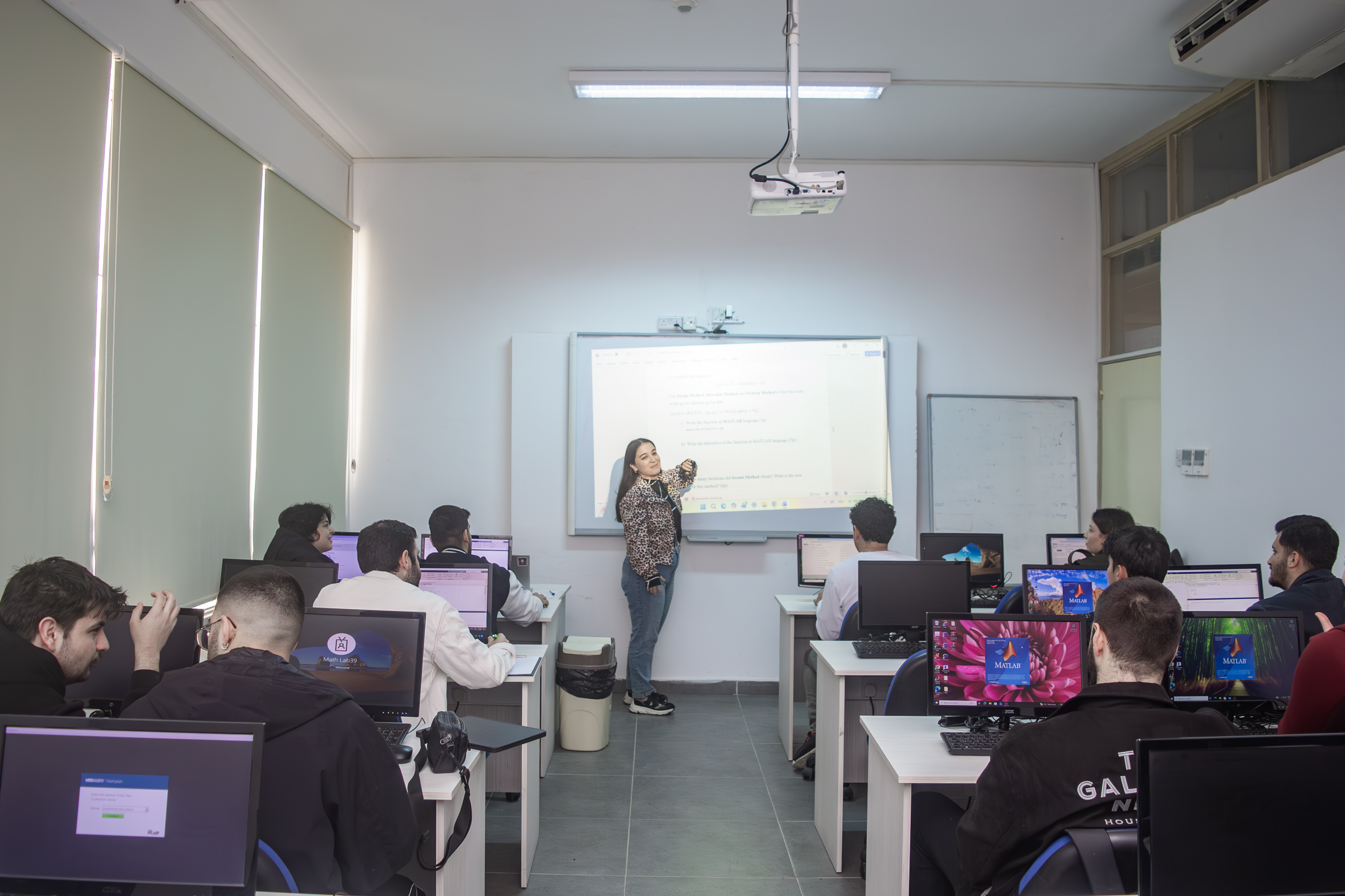 In addition to its computing facilities, CMPLAB 2 is also equipped with a projector, making it suitable for lectures, presentations, demonstrations, and interactive teaching sessions. The combination of capable hardware, specialized academic software, and presentation equipment creates a productive learning environment for both individual practice and classroom-based instruction. CMPLAB 2 therefore serves as an important resource for supporting teaching, research, and student learning at the university.