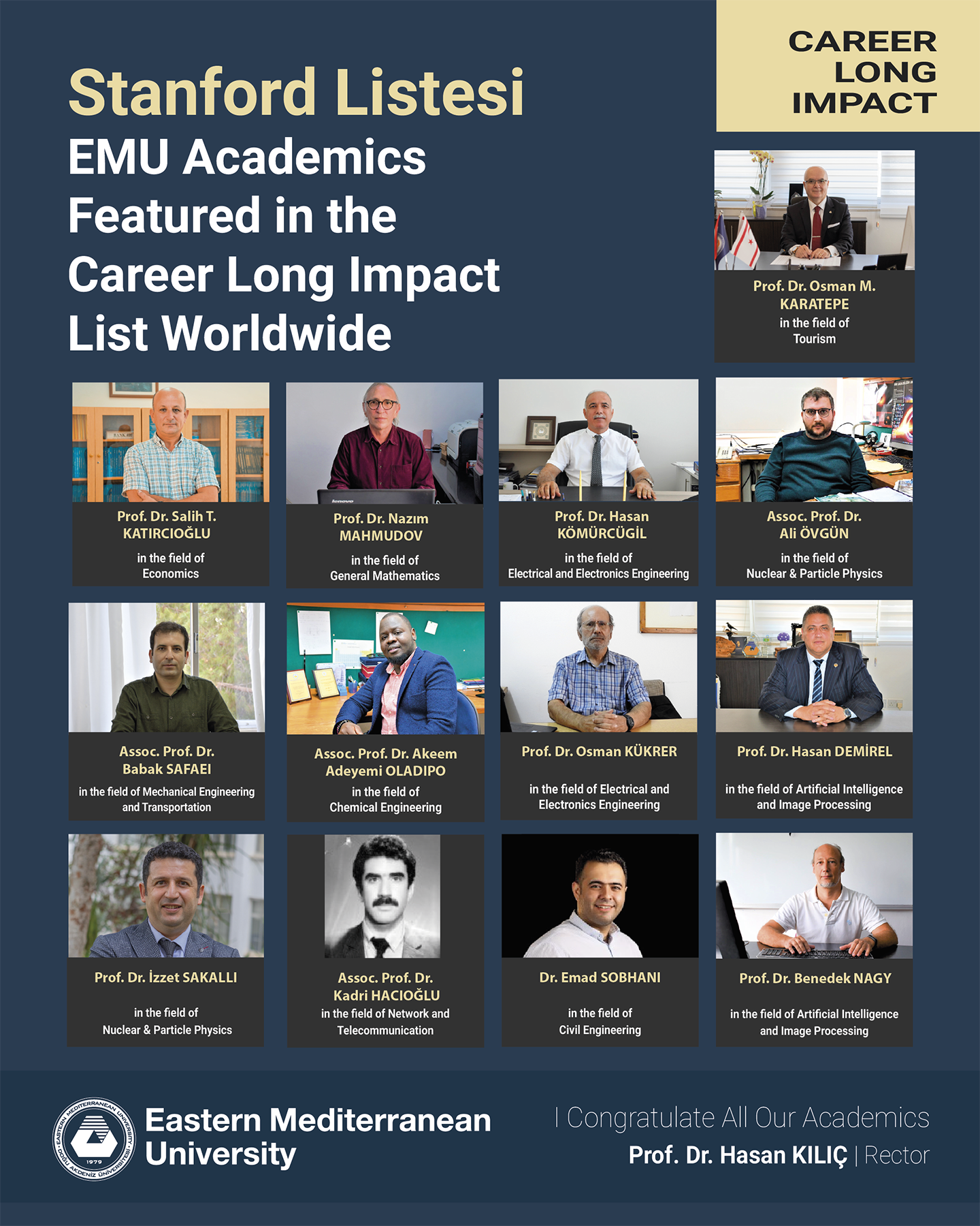 Total of 13 scholars from EMU were listed in the ‘Career Long Impact’ List: